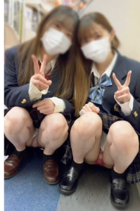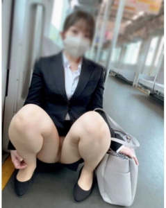 『○撮に気づいてもパンティを隠さないJK 電車対面』