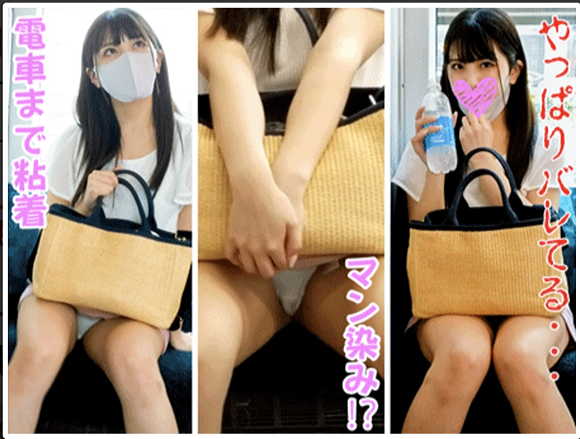 鞄を床に置いてからパンツが隠れてしまいますが、徐々にまた見えてきて、最終的には凄いことになってます。