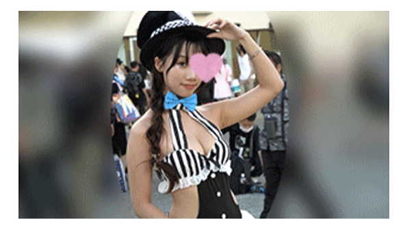 チャイナ服っぽいコスプレですが、乳がでかすぎですwwwかわいい顔に飛び出る乳でもう100点満点なのですが、股間も際どい!!!ギリギリ角度のハイレグとはみ出すマン肉で大変なことになってしまっていますwwwこんなかわいいデカチチちゃんのエロい姿が見れるなんてやっぱコスイベは最高ですwww